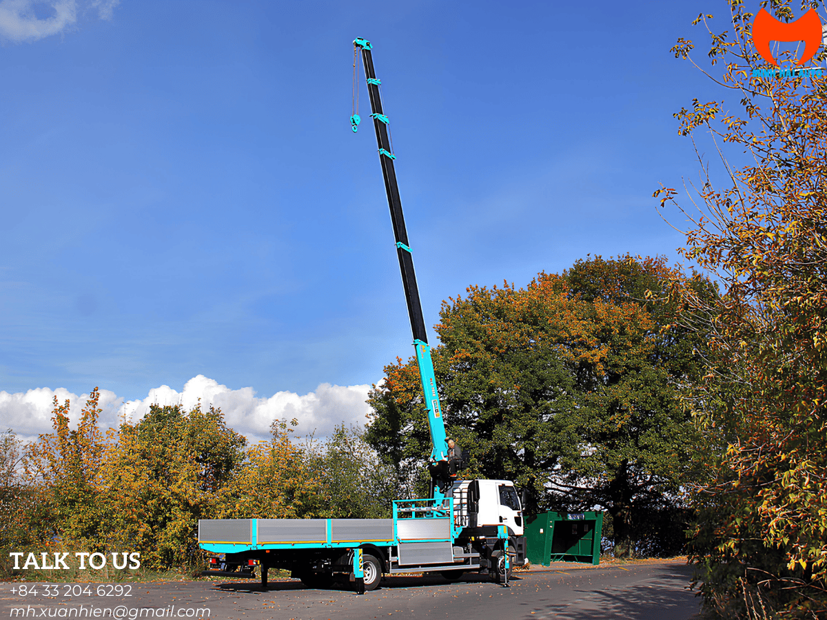 Vận hành kinh tế: động cơ tăng áp, hộp số sàn; kết cấu cẩu tối ưu (6 đốt, truyền động xi-lanh + cáp) cho thao tác nhanh.