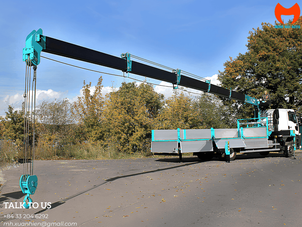Thùng bạt hoặc thùng lửng, bố trí cẩu sau cabin (thông dụng) hoặc đuôi xe (ưu tiên tầm với sau).