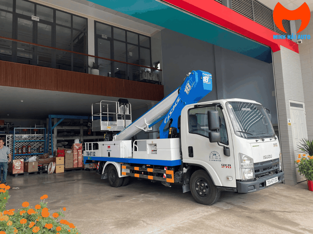 Trong nhóm xe nâng người gắn trên xe tải gọn, cơ động cho đô thị và công trình dân dụng – công nghiệp nhẹ, cấu hình ISUZU QMR77HE5/MINHHAI-18T kết hợp thang nâng SOCAGE model 18T là lựa chọn cân bằng giữa: độ cao làm việc – bán kính vươn – độ linh hoạt khi di chuyển.