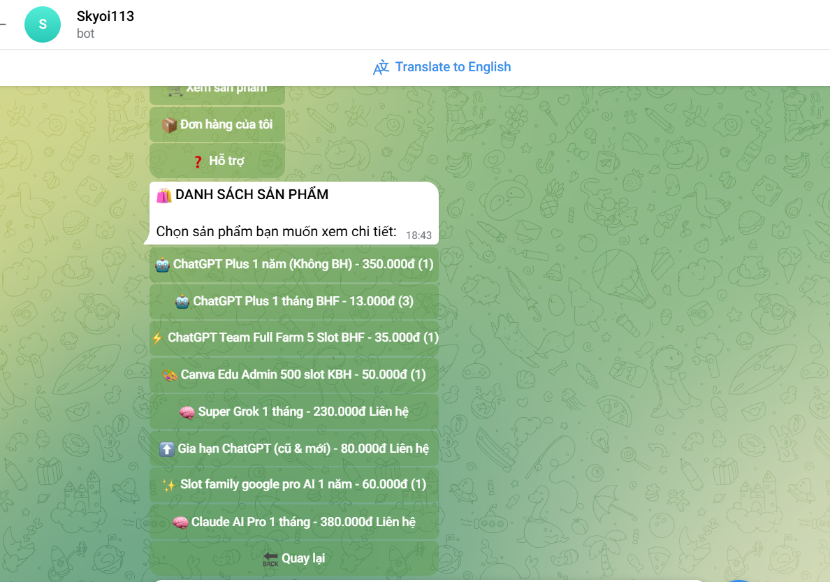 - Hệ thống tự động: Bạn có thể mua hàng nhanh chóng qua Xuanhienbot trên Telegram.