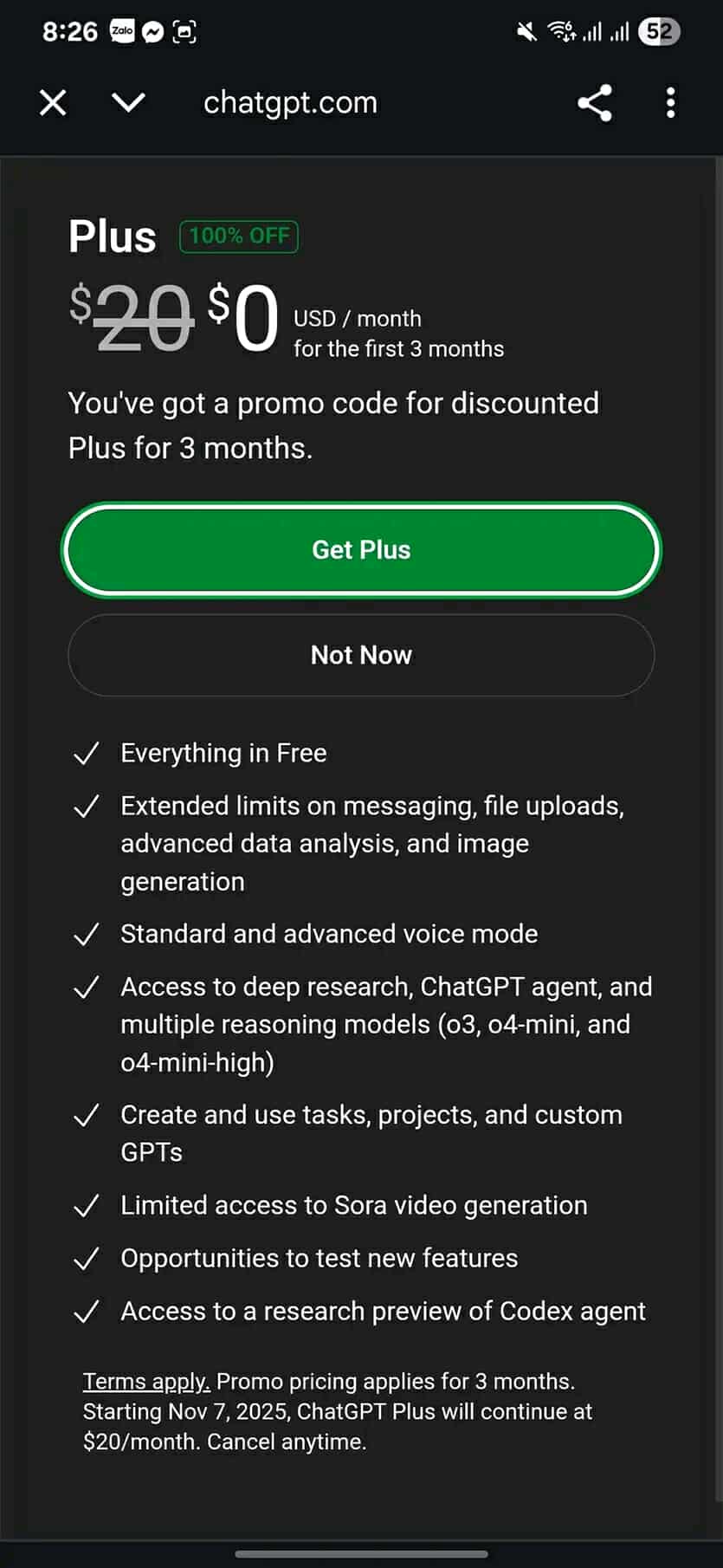 Ưu đãi: 3 tháng dùng ChatGPT Plus miễn phí.