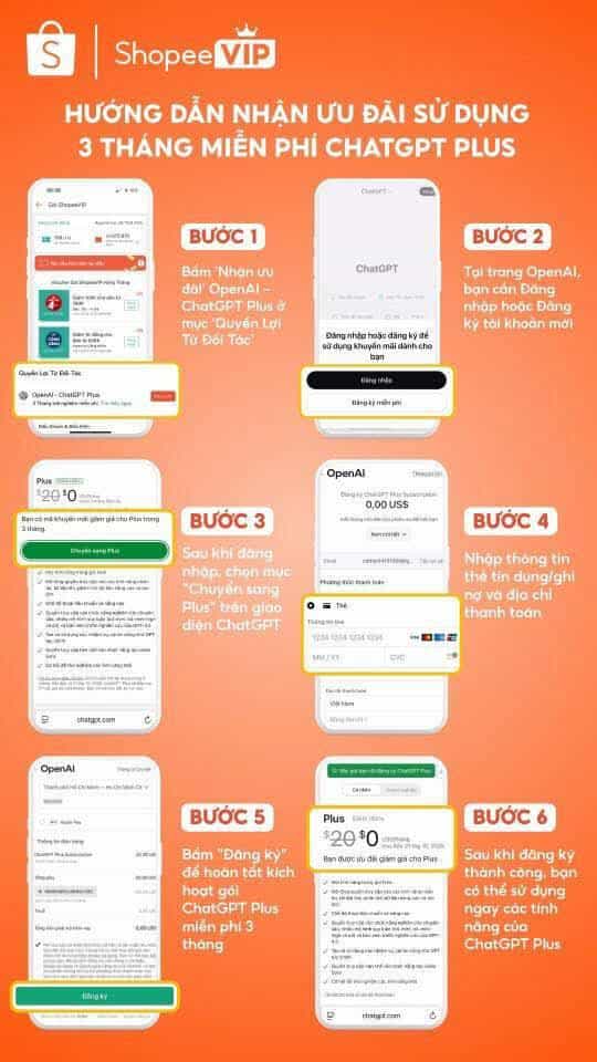 Hướng dẫn nhận 3 tháng miễn phí ChatGPT Plus trên Shopee (độc quyền shopee Vip)