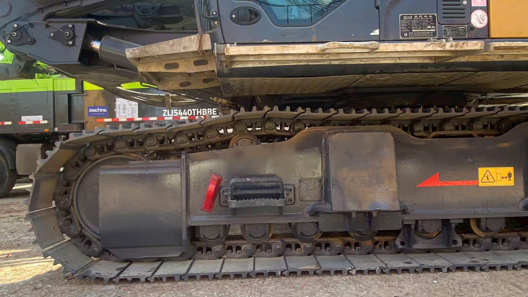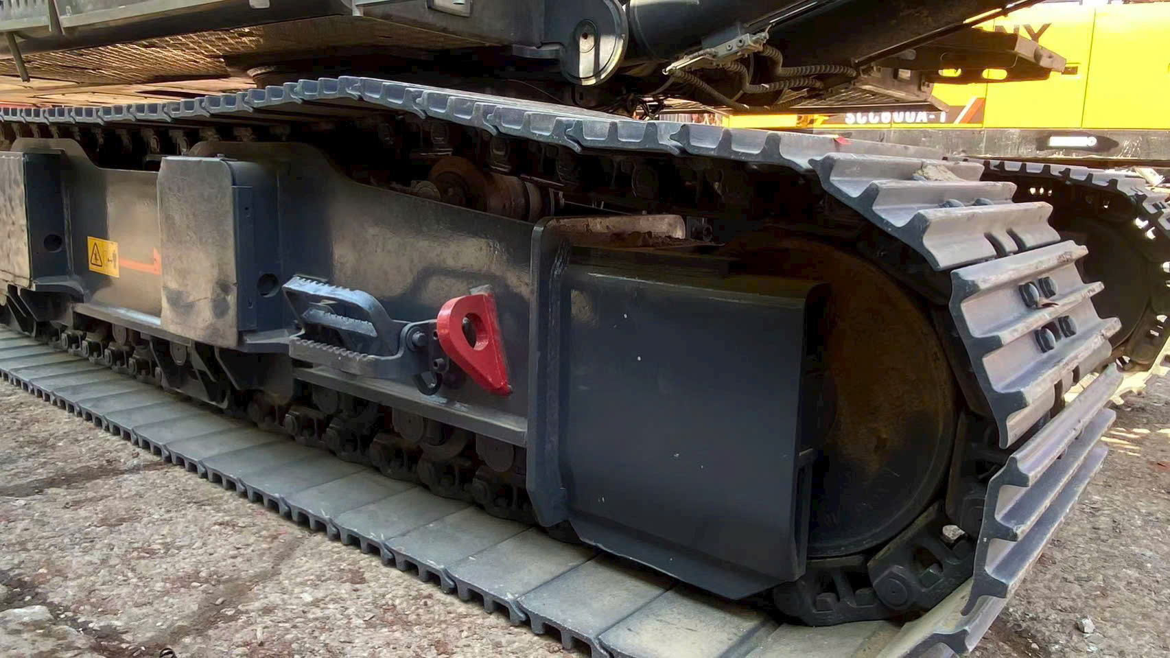 Với tổng trọng lượng vận hành lên tới 84 tấn, một bộ gầm vững chắc là điều bắt buộc. Gầm xe bánh xích của XR240E có thể thay đổi khoảng cách giữa hai dải xích (từ 3250 mm đến 4400 mm), giúp tăng độ ổn định khi làm việc và thu gọn lại để dễ dàng vận chuyển. Bản xích rộng 800 mm phân bổ áp lực đều lên mặt đất, cho phép máy di chuyển và hoạt động trên nền đất yếu. Khả năng leo dốc 35% cũng là một lợi thế lớn khi làm việc tại các công trường có địa hình không bằng phẳng.
