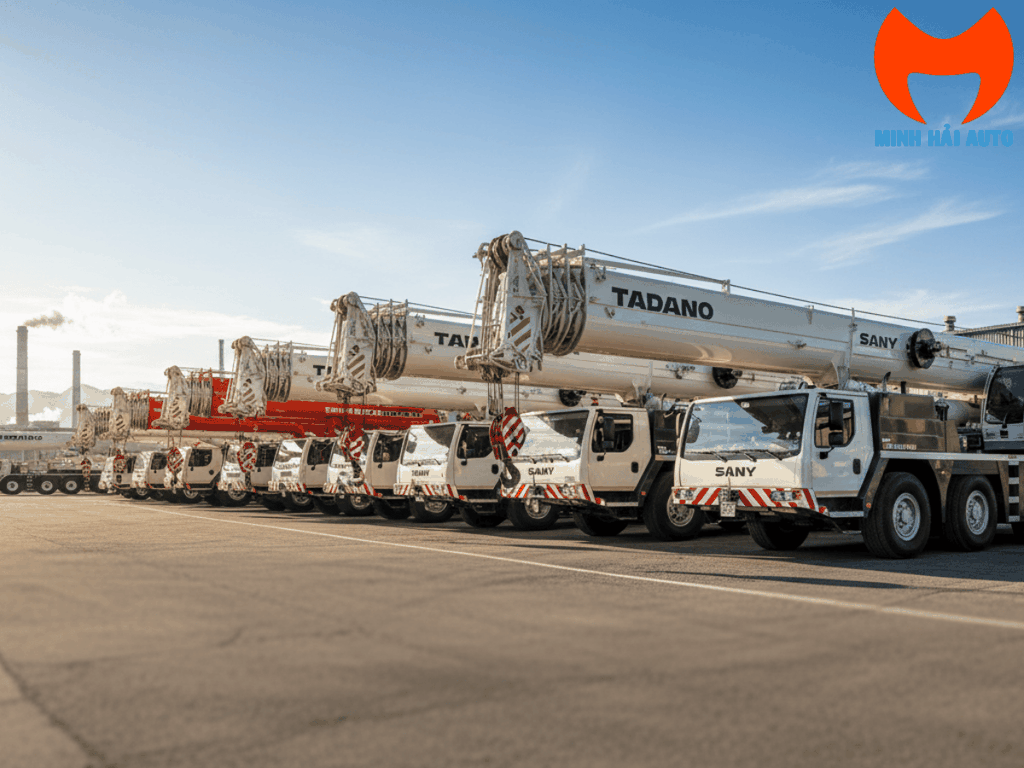 Bài viết dưới đây sẽ giúp Quý khách hiểu rõ tất cả thương hiệu xe cẩu bánh lốp đang có mặt tại Việt Nam – từ cẩu Kato, Tadano (Nhật Bản) đến cẩu XCMG, SANY, Zoomlion (Trung Quốc) và cẩu Liebherr, Grove (Châu Âu/Mỹ) – kèm bảng giá tham khảo, so sánh chi tiết và hướng dẫn chọn mua phù hợp nhất.