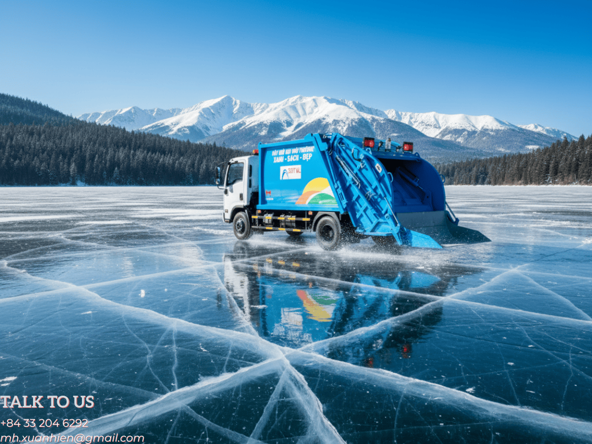 Hệ thủy lực dùng bơm piston Hyva (Ý) lưu lượng 80 cc/vòng, van cơ khí Akon/Yuken, xi lanh nhập liệu – ép – xả bố trí khoa học. Chu kỳ nạp rác nhanh khoảng 10 giây, cơ cấu phễu nạp có tải thiết kế đến 800 kg, thùng có két nước thải riêng 220 L bằng Inox giúp kiểm soát rò rỉ và mùi. Trang bị cảnh báo, tay vịn – bậc đứng, chắn hông, chắn bùn… đảm bảo an toàn cho tổ lái và kỹ thuật vệ sinh môi trường.