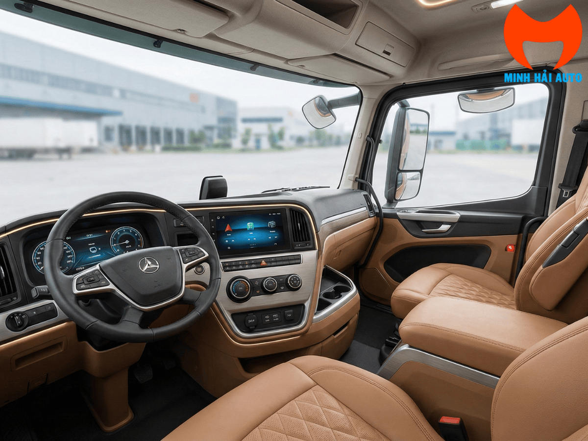 Bảng đồng hồ LCD 12 inch hiển thị chi tiết trạng thái pin (SoC), dòng điện sạc/xả và áp suất lốp. Ghế lái là loại ghế hơi giảm chấn tích hợp đa chế độ điều chỉnh, giúp giảm mệt mỏi cho tài xế trong các ca làm việc kéo dài.