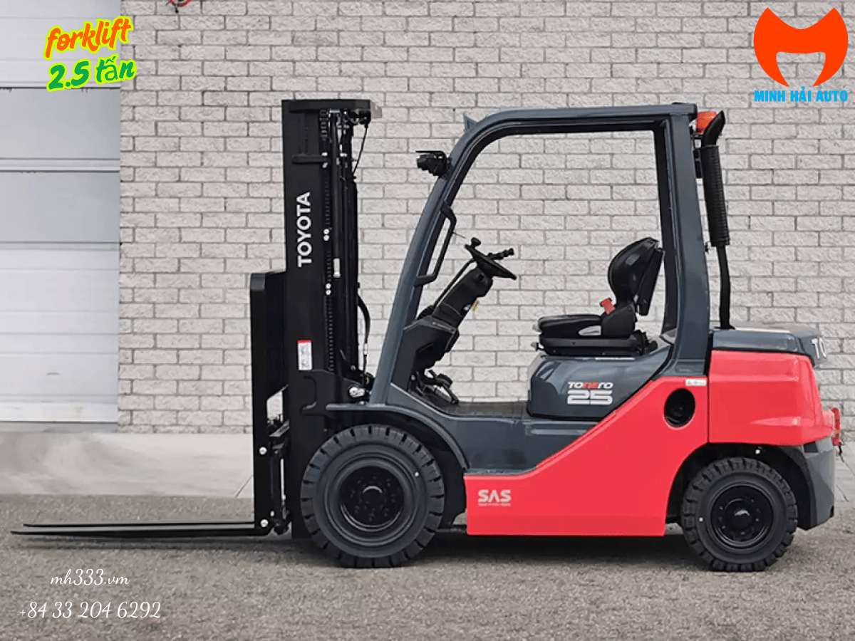 Nhờ thiết kế bền bỉ và động cơ Diesel mạnh mẽ, xe nâng hàng forklift Toyota 2.5 tấn là lựa chọn lý tưởng cho nhiều ngành nghề và môi trường làm việc khác nhau: