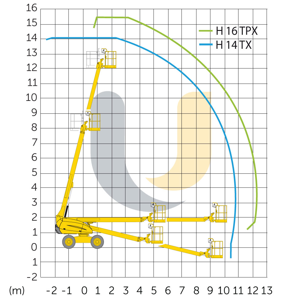 Đáp: Xe nâng người dạng Z-boom (khớp gập) như Haulotte 14m có khả năng vươn xa theo phương ngang và tiếp cận các vị trí có vật cản bên dưới, linh hoạt hơn nhiều so với xe cắt kéo chỉ nâng thẳng đứng.