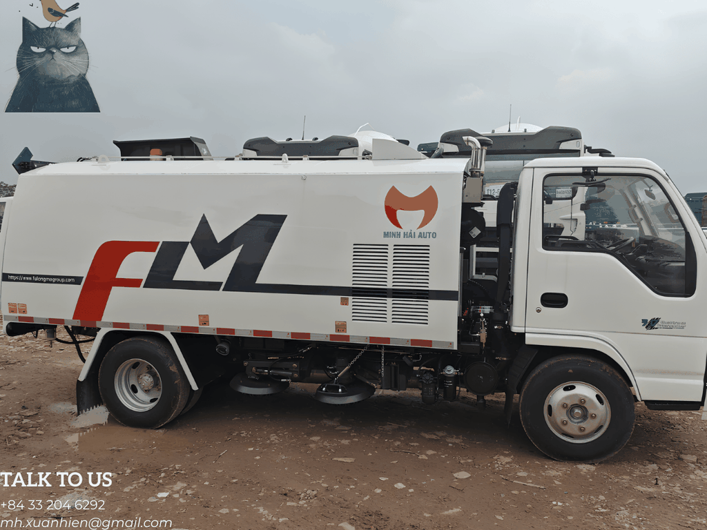 Xe quét rác hút bụi 4.5 khối FULONGMA là giải pháp vệ sinh đô thị và công nghiệp toàn diện. Thùng rác inox SUS304 4.5m³, năng suất 62.000 m²/h. Tích hợp công nghệ chổi tự bù mòn, vòi hút chữ W, phun sương dập bụi hiệu quả. Vận hành thông minh, an toàn. Zalo/Call : 033 204 6292