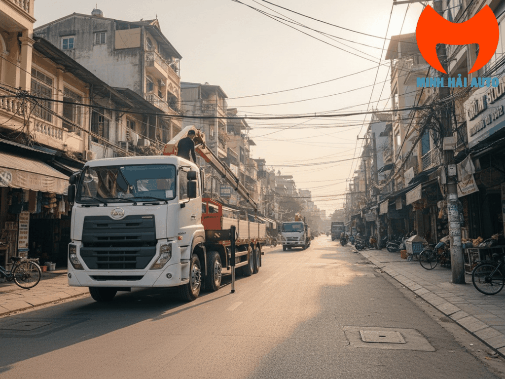 Bạn đang tìm kiếm một giải pháp vận tải kết hợp nâng hạ toàn diện, vừa yêu cầu tải trọng cao, vừa đòi hỏi sự linh hoạt tối đa trong không gian chật hẹp? Minh Hải Auto xin giới thiệu sản phẩm: Xe tải 4 chân gắn cẩu gập Palfinger PK11002 (5.7 tấn). Đây là sự kết hợp giữa xe tải nền GH8E 350 EUV công suất cao, hoạt động ổn định và dòng cẩu xếp Palfinger công nghệ Áo – hay còn được biết đến với tên gọi "cẩu gấp khúc robot" – mang lại hiệu suất làm việc cao cho mọi công trình.