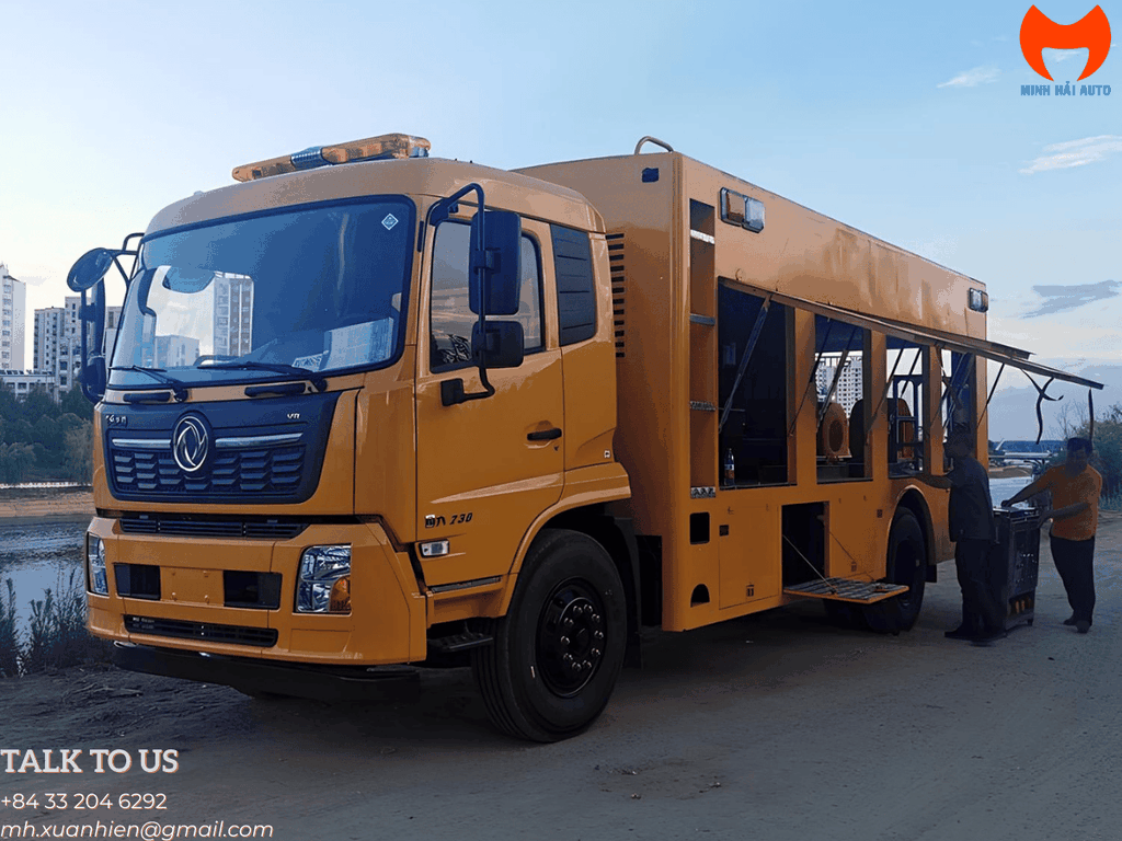 Ghi chú: Xe có nhiều tùy chọn động cơ khác. Các thiết bị chuyên dùng gồm tổ máy phát điện, bơm nước, tủ điều khiển. Thân vỏ và khoang chứa được gia công từ vật liệu Q235, đảm bảo độ bền và an toàn.